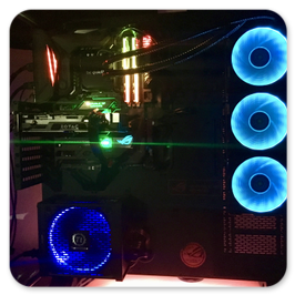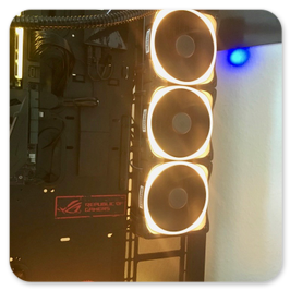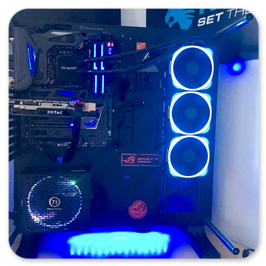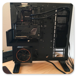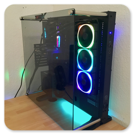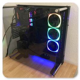 Thermaltake Core P7BeQuiet Silent Loop 360BeQuiet PureWings 2 3xPhanteks Halos LUX RGB Frame 3XThermal Grizzly ConductonautIntel i5 7600K 4.0GHZ @5.0Ghz ÜbertaktetAsus Maximus IX Formula Z270Nvidia Zotac GTX1060 AMP Edition 6GBBeQuiet PurePower 600WSpäter: Thermaltake Smart Pro RGB 650WSamsung 960 EVO SSD 250GBWestern Digital WD RED 2TBGSKILL TridentZ RGB 4133Mhz 16GBGesammtwert: 2050€