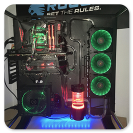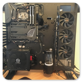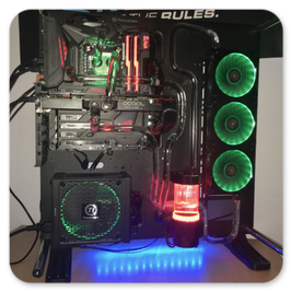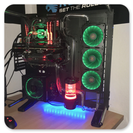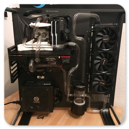 Thermaltake Core P7Asus Maximus IX Formula Z270Intel Core i5 7600K 4.0Ghz @5.1Ghz ÜbertaktetPhanteks C350i RGB KühlerThermal Grizzly KryonautMSI GTX980ti WatercooledThermaltake Smart Pro RGB 650WGSKILL TridentZ RGB 4133Mhz 16GBSamsung 960EVO SSD 250GBWestern Digital WD Red 2TBEnermax NEOChanger 200ml Pumpe/AGB360er Radiator und KühlmittelFittinge und HardtubesBeQuiet PureWings 2 3xPhanteks Halos LUX RGB RahmenGesammtpreis: 2600€